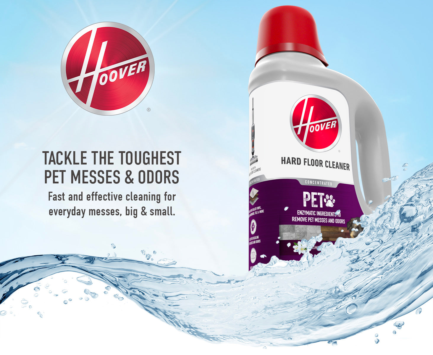 Hoover Pet Hard Floor Solution is your ideal ally against pet messes. With powerful enzymatic cleaning ingredients, it effortlessly tackles pet messes and odors. Designed for best performance with Hoover hard floor cleaner, it's perfect for everyday use on sealed hard floors like vinyl, hardwood, tile, and laminate. Say goodbye to sticky messes, dirt, and grime, and experience the ease and efficacy of Hoover's Pet Hard Floor Solution.