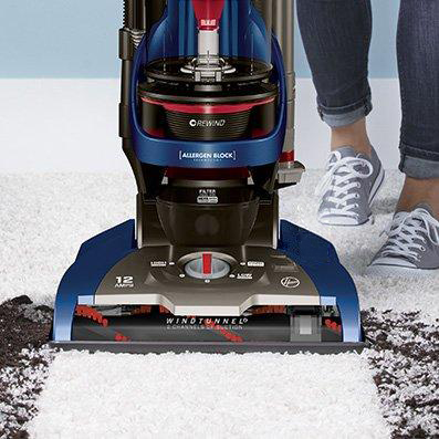 Hoover® WindTunnel® 2 Whole House™ Rewind is perfect for Whole Home Cleaning from Floor to Ceiling. The Multi-Floor Brush Roll allows for optimal cleaning on carpets and off to prevent scattering of debris on hard floors for a more effective clean. Advanced Multi-Cyclonic Technology gives you a continuous cleaning experience with No Loss of Suction,** while WindTunnel® 2 Technology creates 2 channels of suction to lift and remove surface debris and deep down embedded dirt. The hassle-free 25 ft. power cord automatically retracts in seconds, so you never have to wrap a cord again and with up to 16 ft. of cleaning reach you can clean dirt and dust anywhere. Advanced AllergenBlock™ Technology, Filter Made with HEPA Media, odor-absorbing carbon and Pet Turbo Tool make WindTunnel® 2 Whole House™ Rewind great for pet owners.