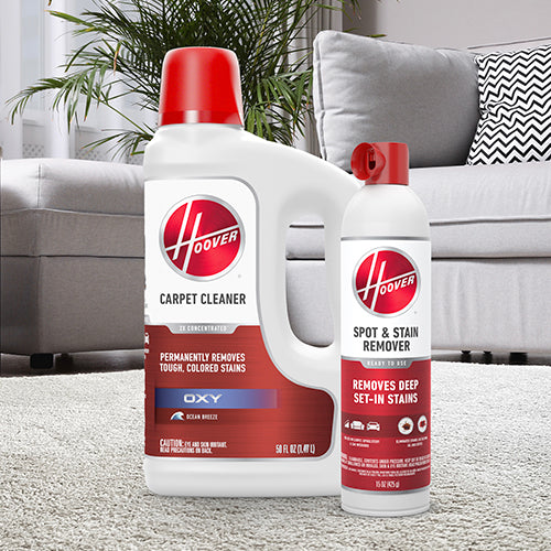 For keeping your carpets and rugs free of stains and looking good as new you'll want Hoover®'s Max Strength Deep Stain Remover. This tough stain remover attacks and breaks down both old and new stains for easy cleanup. Our Deep Stain Remover tackles tough messes including coffee, wine, food spills, motor oil and more. And not only does it work on carpets and rugs, it removes stains from upholstery so you can take care of your furniture, too!