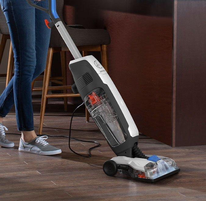 The Hoover® PowerDash™ Hard Floor Cleaner takes the dirty work out of hard floor cleaning. Antimicrobial SpinScrub® brushes loosen tough messes to safely clean sealed hard floors. Then, the fast-drying system squeegees and suctions at the same time. So you can enjoy clean and dry floors without getting on your hands and knees.